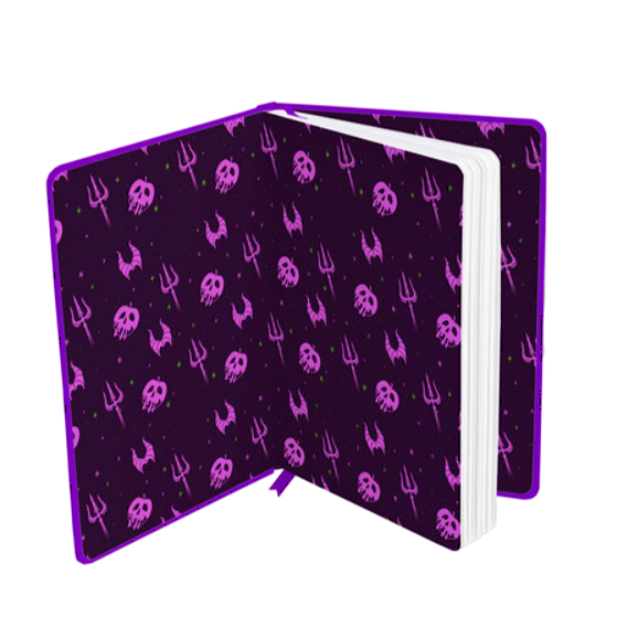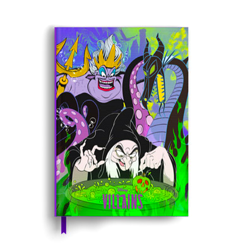 Con tapas duras, detalles brillantes y un interior decorado con símbolos de los villanos más icónicos, es el compañero perfecto para tus ideas más traviesas. 👑🐙🐉