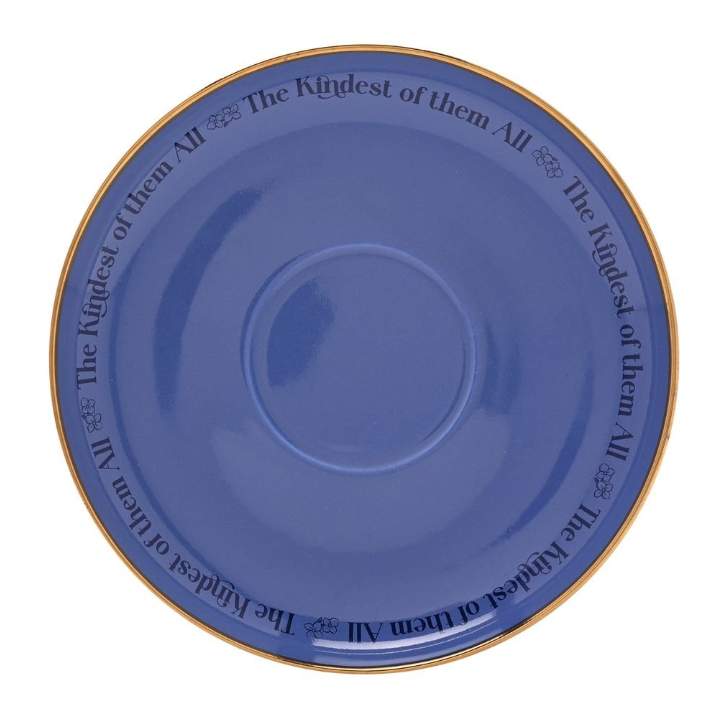 Tanto la taza como el plato llevan inscrita la frase “The Kindest of them All”, cuyo significado es “La más bondadosa de todas”, un homenaje al carácter puro, tierno y amable de Blancanieves, la princesa conocida por su corazón noble y bondadoso.