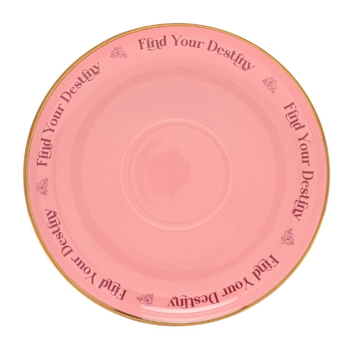 La taza incluye la frase “Follow Your Own Light”, que significa “Sigue tu propia luz”, un mensaje precioso que invita a confiar en tu esencia y caminar guiada por tu brillo interior. El platillo mantiene la frase original “Find Your Destiny”, que significa “Encuentra tu destino”, en perfecta armonía con el viaje personal de Rapunzel.