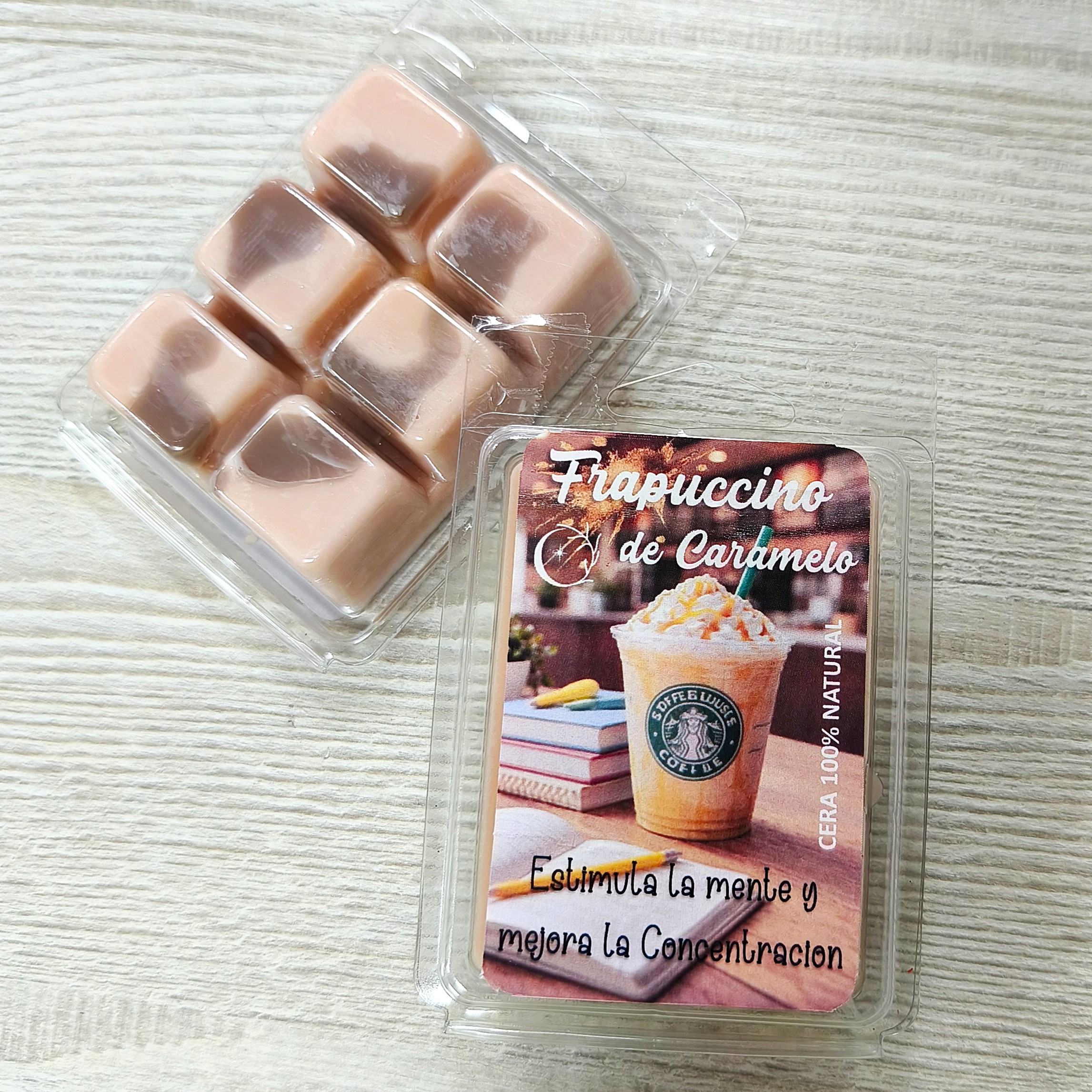 El Melt Frappuccino de Caramelo es una cera para derretir elaborada con cera 100% vegetal, diseñada para llenar tu espacio de un aroma gourmand dulce y, al mismo tiempo, funcional.