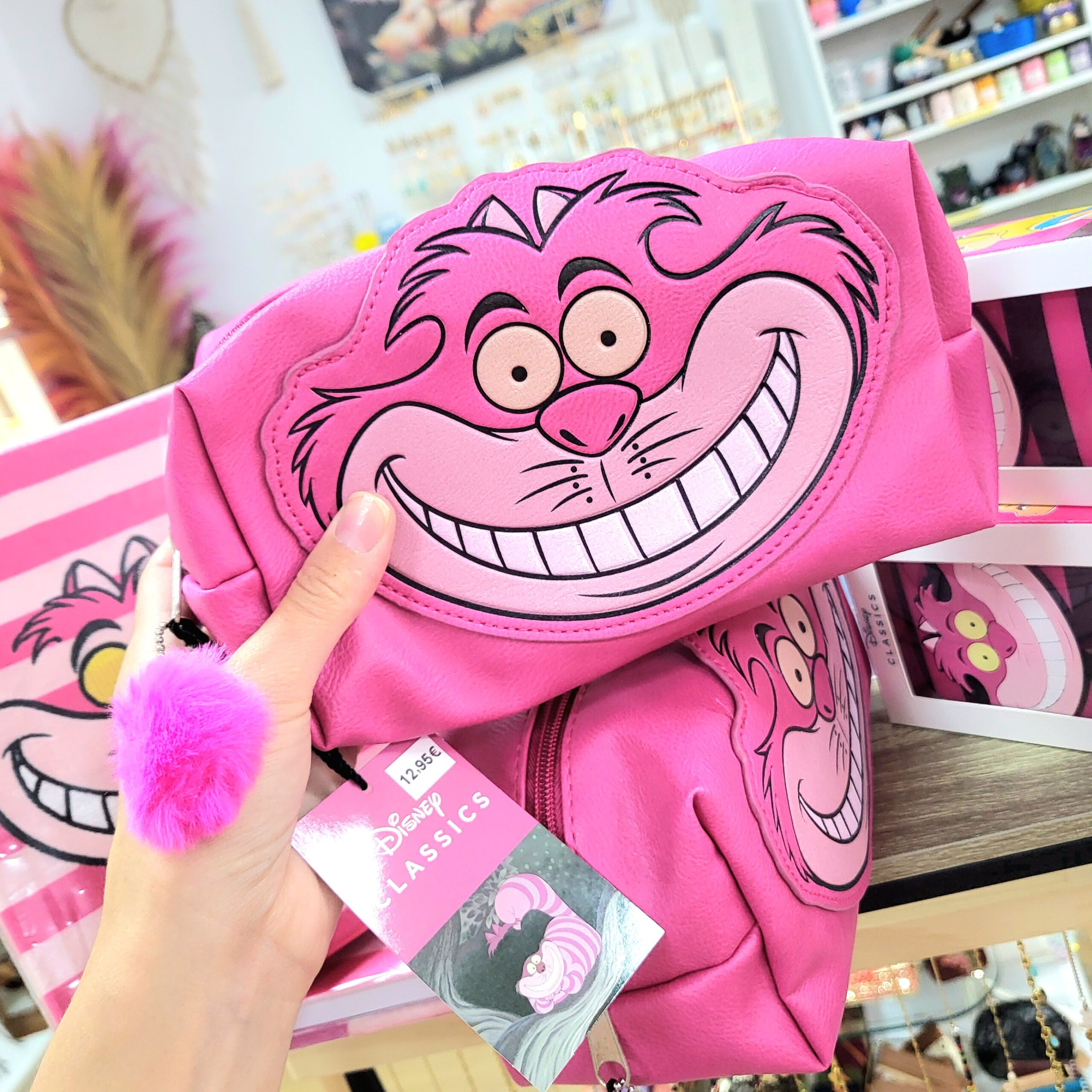 La sonrisa más traviesa de Disney llega en forma de neceser rectangular de polipiel, inspirado en el inolvidable Gato Cheshire de Alicia en el País de las Maravillas.