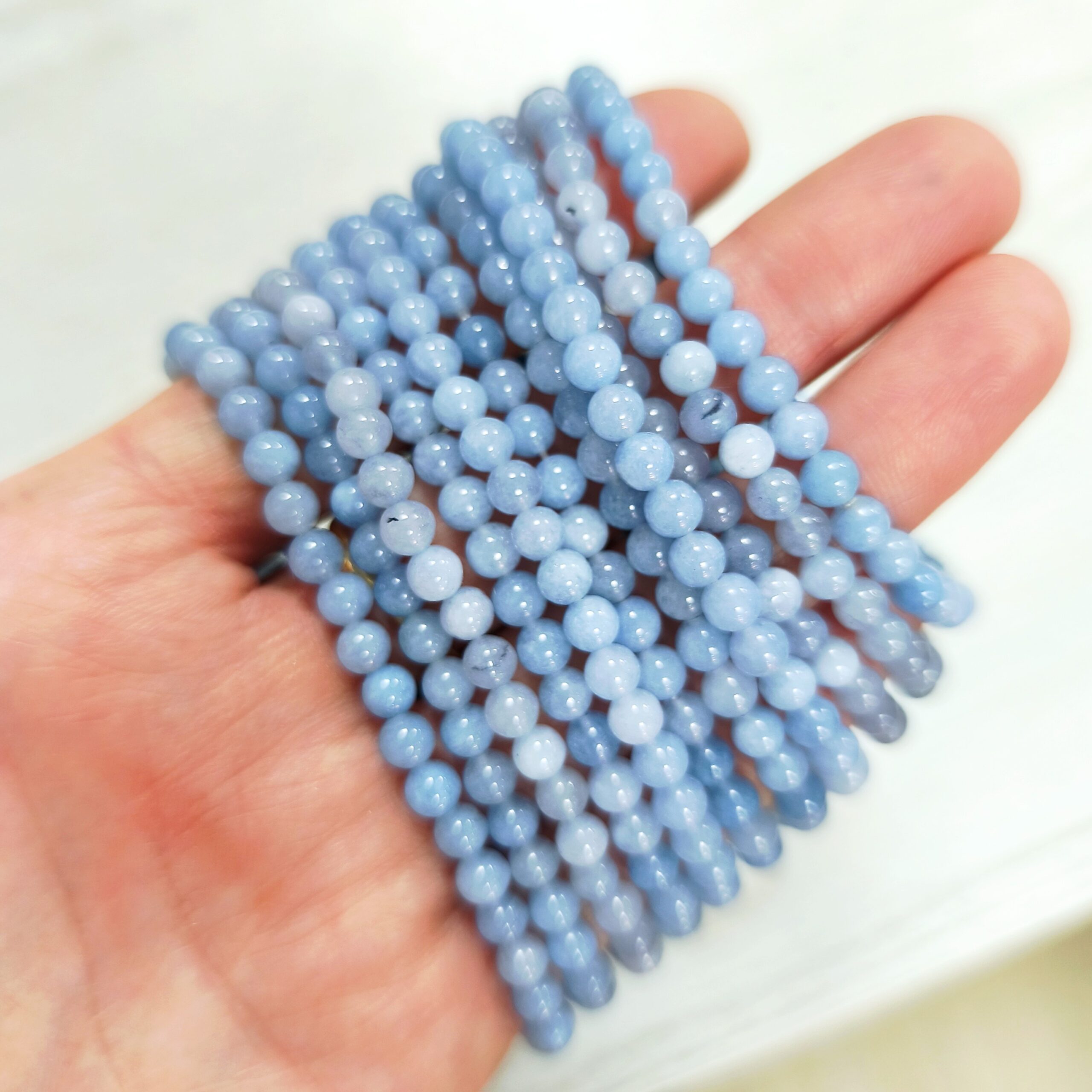 La pulsera de cuarzo azul está elaborada con piedra natural en bolitas de 4 mm, ideal para quienes buscan una pieza delicada, elegante y con una energía suave y relajante.