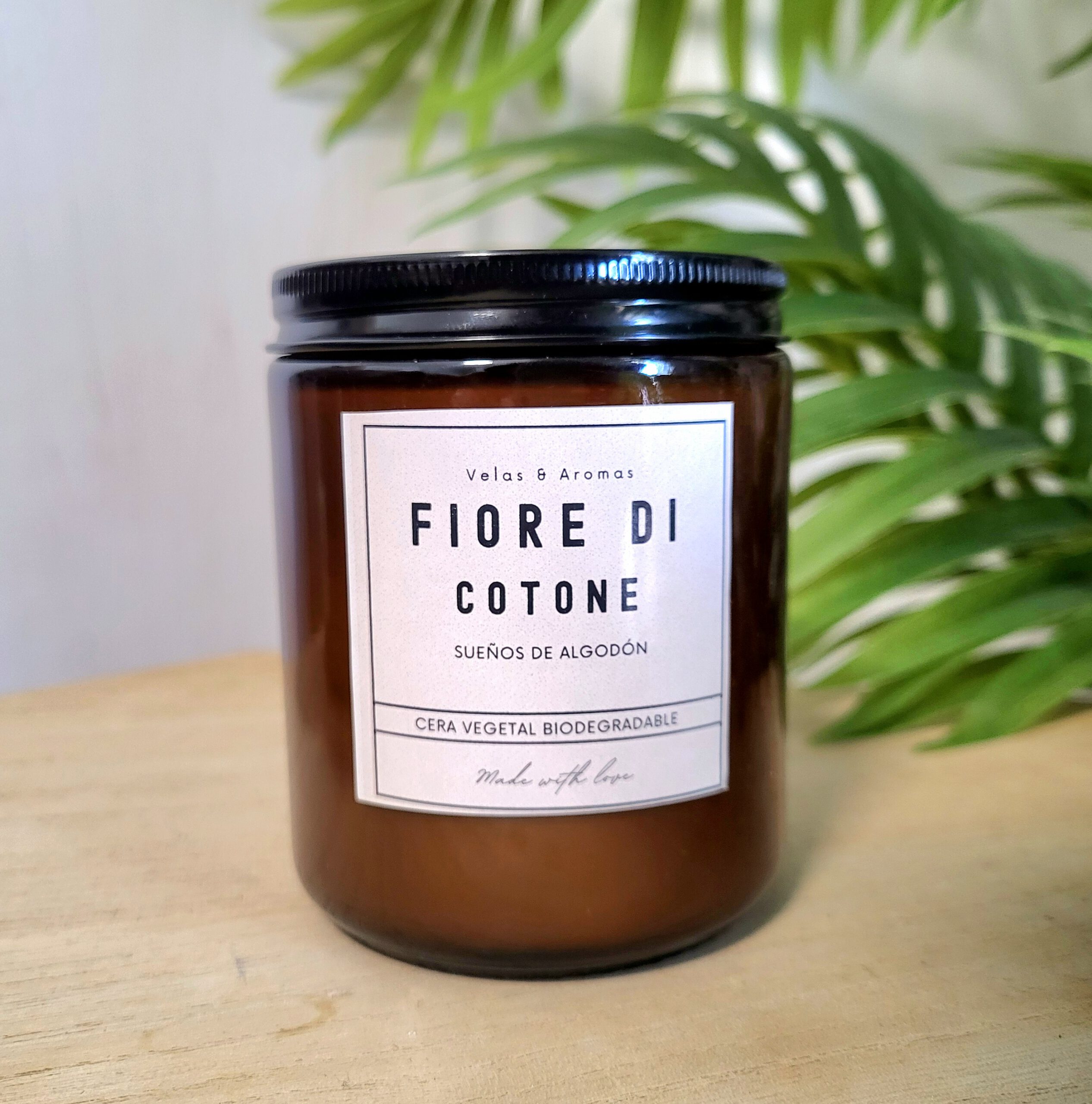 Esta vela está elaborada con cera vegetal biodegradable.